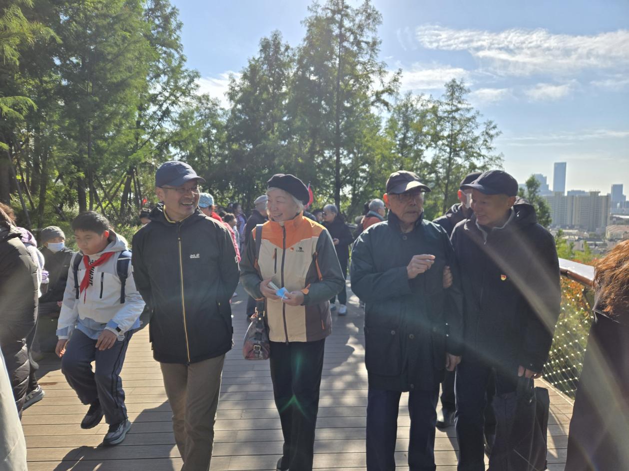 11月18日,第三、第五支部的老党员们参观了上海世博文化公园,并登上了双子山。这座国内首座高度超过40米的空腔人工仿自然山体,耗时七年建成,展现了“自然生态永续”的理念。老党员们一边欣赏浦江美景,一边畅谈往昔岁月。活动中陆永昌老师表示,看到上海的发展进步,更感受到了上海的人文关怀和城市发展的创造力,很愉快也很有收获。季元龙老师更是即兴赋诗一首: