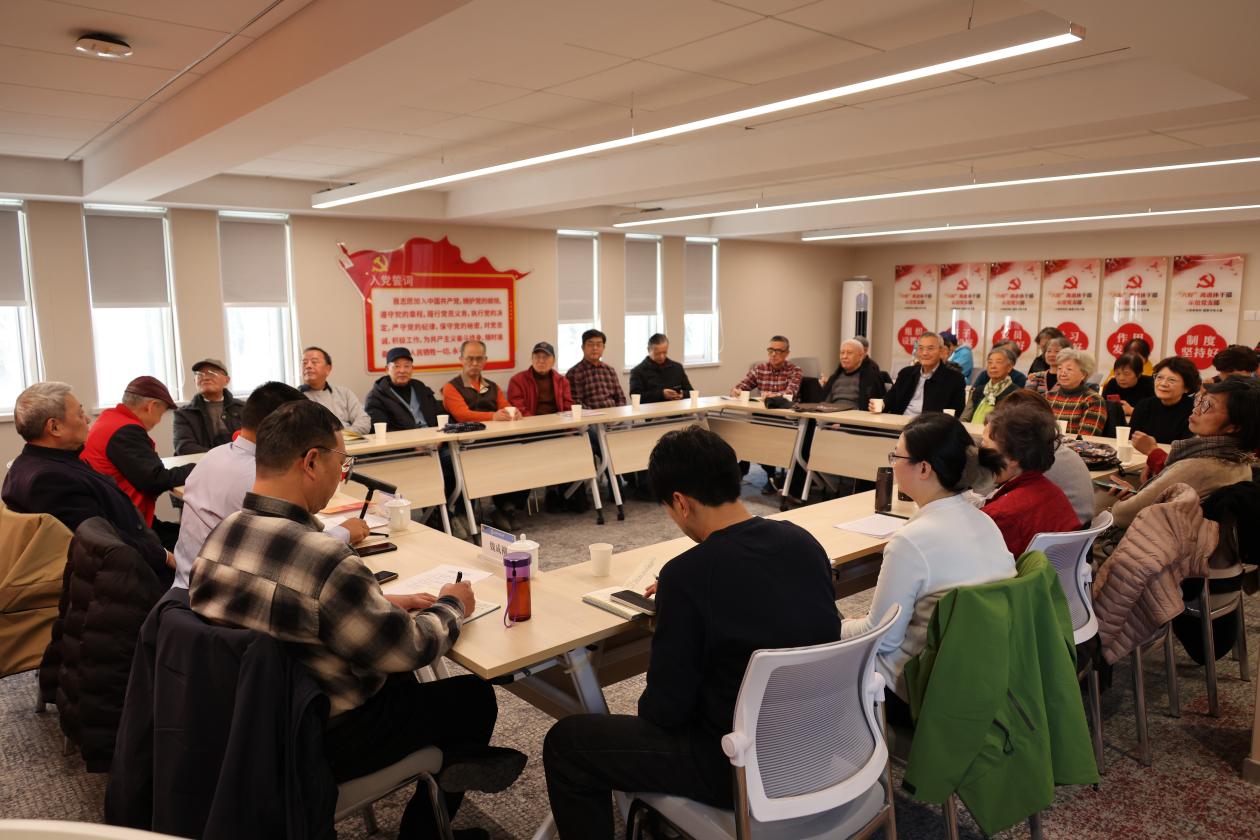 在交流研讨环节,曹航、陆经生、盛裕良和陈福康等老同志先后发言,结合自身在理论研究、教书育人等方面的丰富成果及参与银龄行动计划的经验感悟,畅谈学习党的二十届四中全会精神的心得体会。大家一致表示将持续深化对全会精神的学习领悟,始终坚守“离岗不离党、退休不褪色”的信念,坚持为党育人、为国育才,展现上外退休教师的责任担当与奉献精神,为党和国家的教育事业贡献“银发力量”。