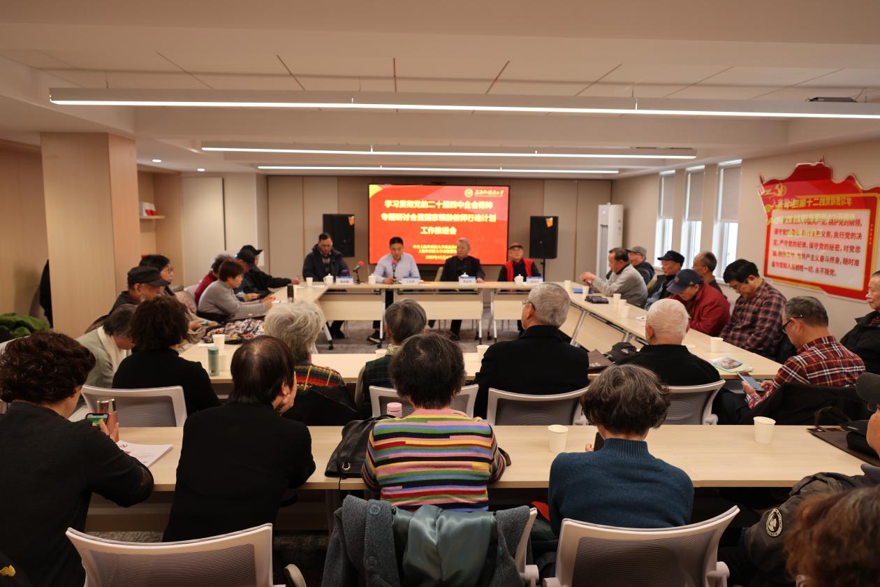 12月4日上午,上海外国语大学离退休党委、老教授协会在虹口校区召开学习贯彻党的二十届四中全会精神专题研讨会暨国家银龄教师行动计划工作推进会。校离退休党委书记、离退休工作处处长丁永祥,离退休党委副书记魏成柳,原副校长、校老教授协会会长谭晶华,原副校长、离退休局级支部书记盛裕良等出席。各离退休支部书记,老专家、老教授代表,离退休工作处工作人员等40多人参加了会议。