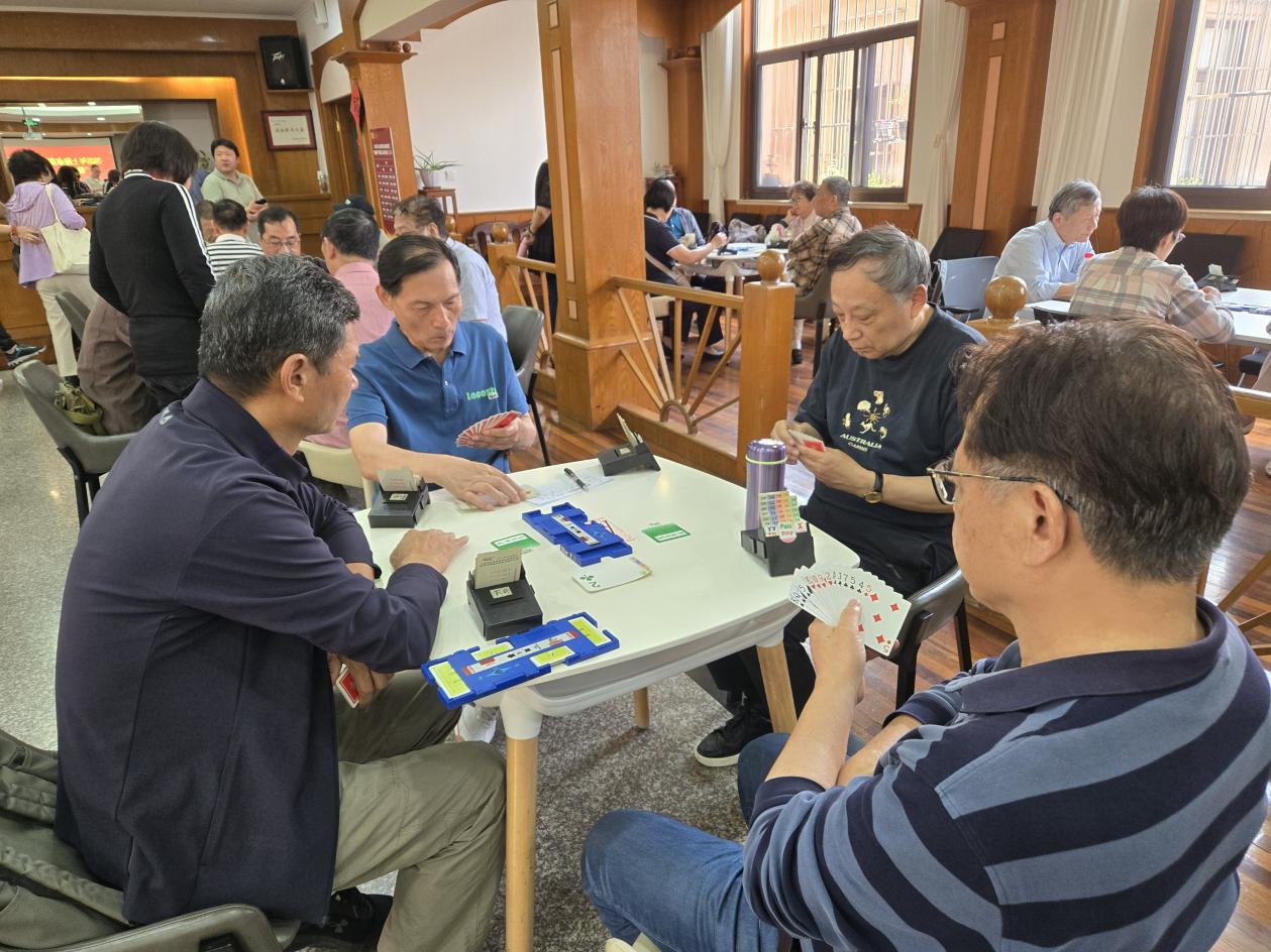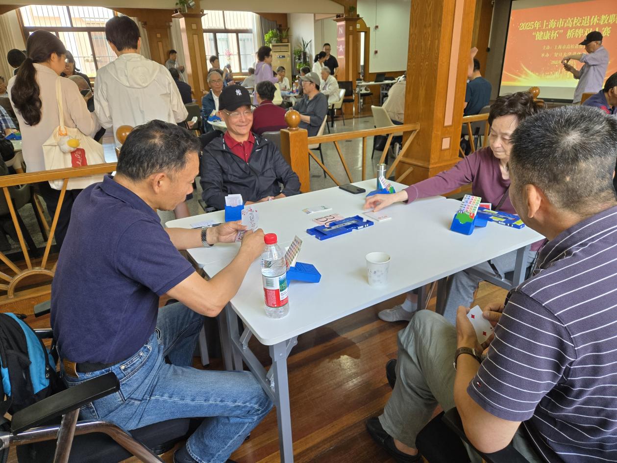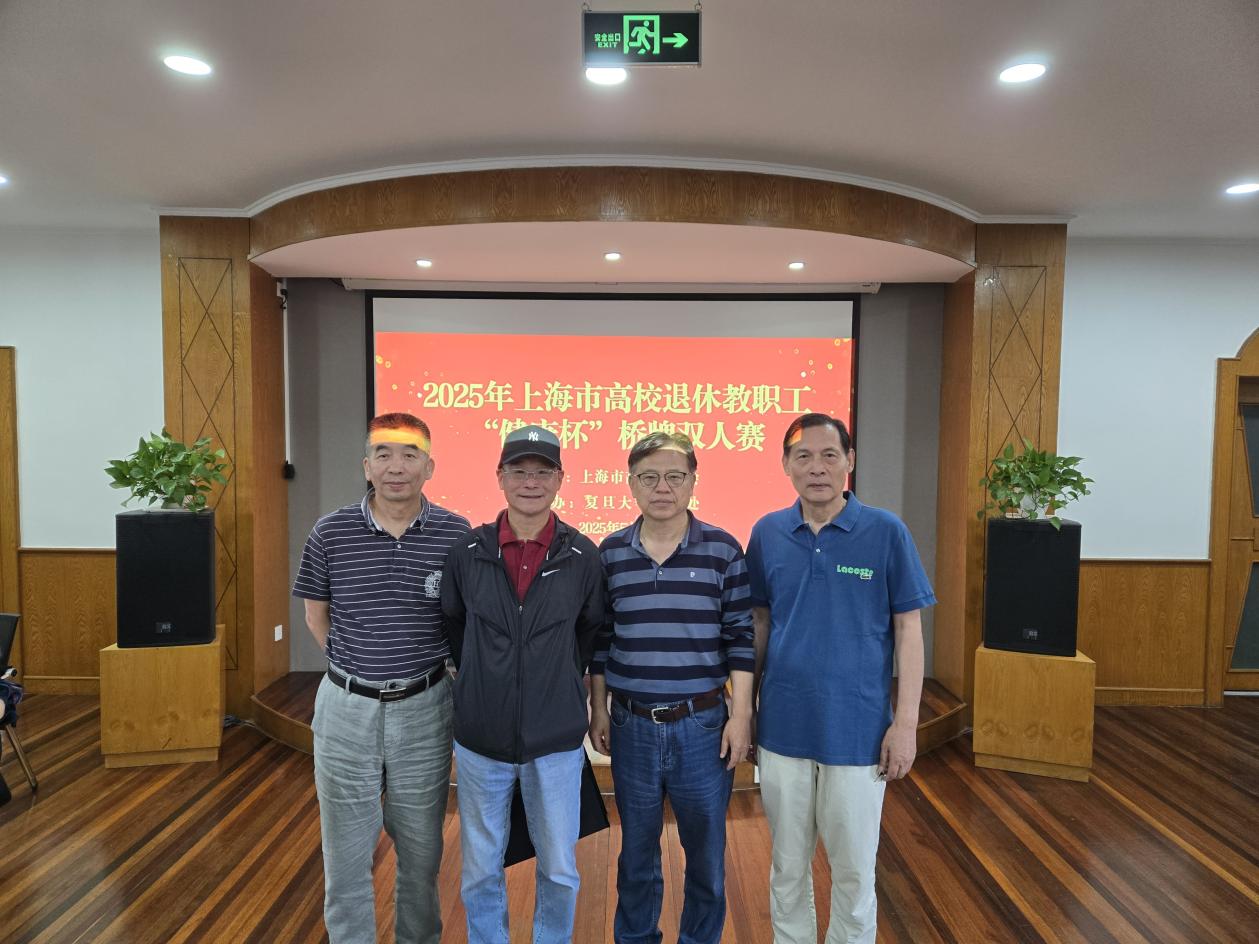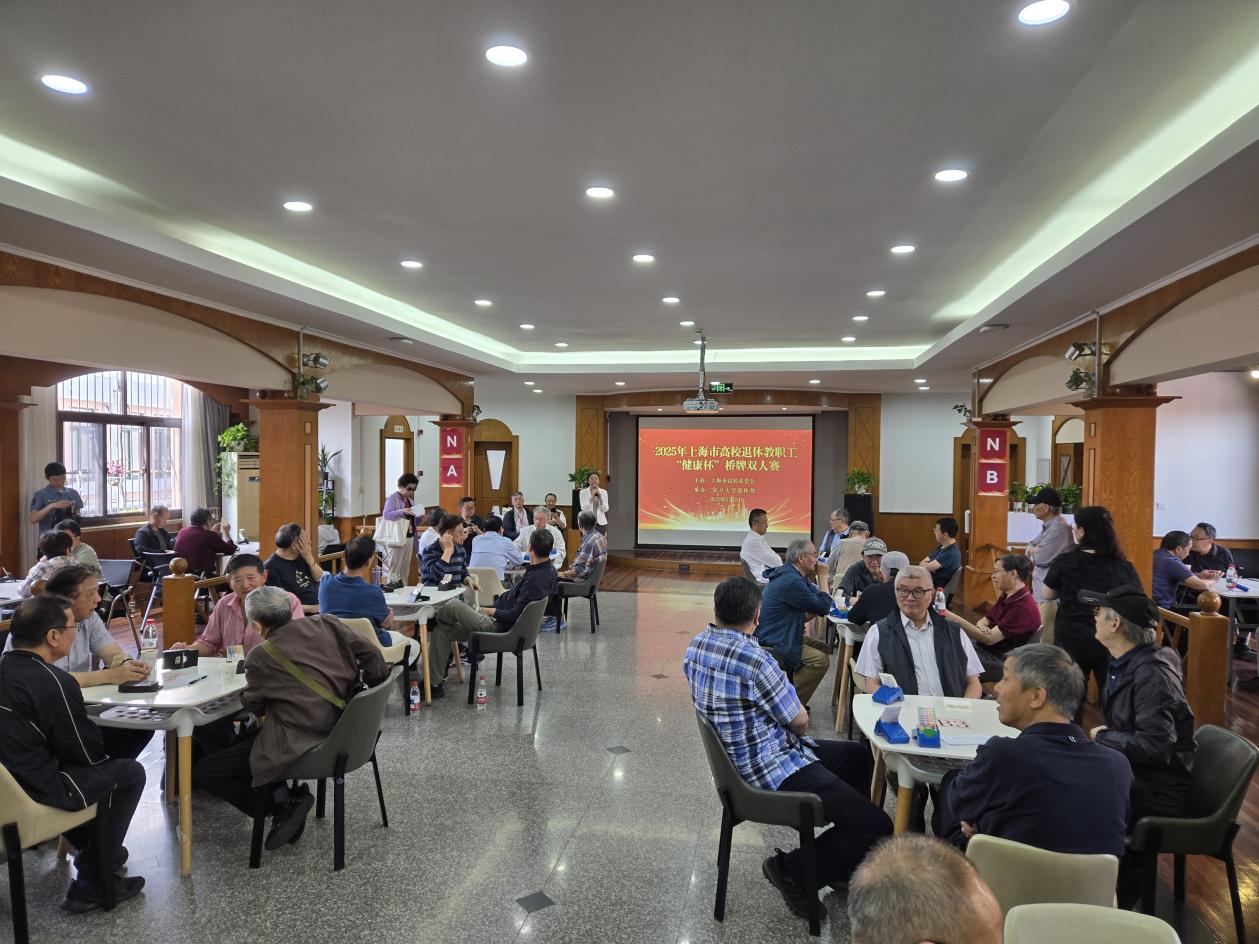 5月29日,由上海市高校退管会精心策划并主办的2025年上海市高校退休教职工“健康杯”桥牌比赛,在复旦大学老年活动中心拉开帷幕。我校积极响应,选派了立泰棋牌社的四位老同志——张琳、吴毓卿、袁洪国、杨德辉参赛,他们以饱满的热情和精湛的牌艺,展现了我校退休老同志的风采。
