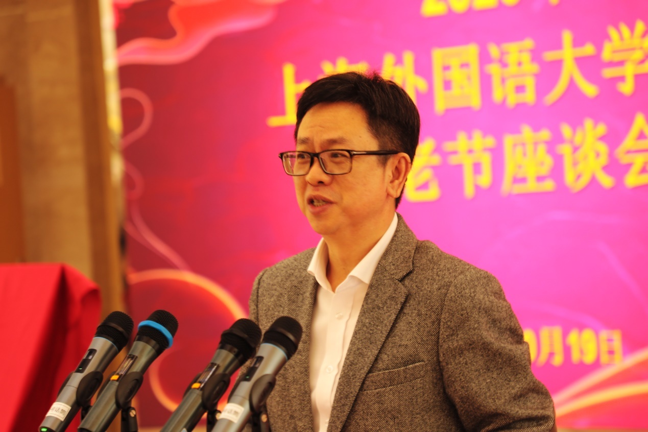 姜锋代表学校党政向老同志们致以节日的祝福和亲切的问候。他深情说道,各位老同志都曾为上外的建设付出了辛勤的努力,为上外的发展奉献了毕生的精力,值得全校师生尊敬和关爱。今年是学校“十三五”的收官之年,明年将是“十四五”的起始之年。当前和未来,上外既面临机遇也面临挑战。学校将在党中央和教育部、上海市委市政府的领导下,集中全体师生的智慧与力量,凸显学校学科优势和办学优势,加快一流外国语大学和一流学科建设,早日将上外建成国别区域全球知识领域特色鲜明的世界一流外国语大学。