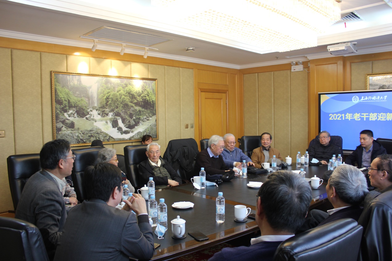 1月18日上午,校党委在上外迎宾馆二楼会议室举行2021年老干部迎新座谈会暨校情通报会。校党委书记姜锋,校长、校党委副书记李岩松,校党委副书记王静和退休局级老领导欢聚一堂,同迎新春佳节,共叙学校发展。校离退休工作处处长丁永祥主持了迎春座谈会暨校情通报会。