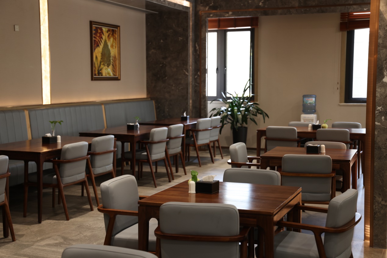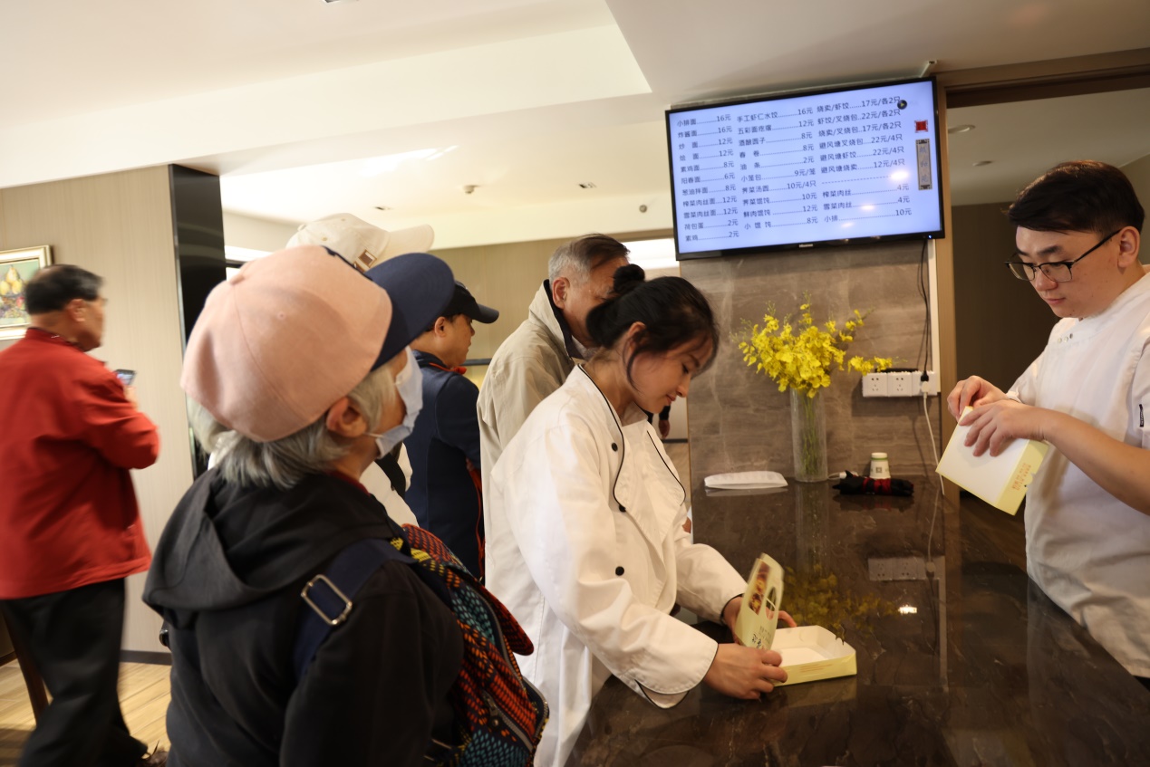 很快就到了午餐的时候,老师们走进餐厅,品尝了一顿绿色、健康又美味的午餐。这里的蔬菜、水果大多是养老中心内自产,既新鲜又保险,这顿午餐让老师们不禁交口称赞。