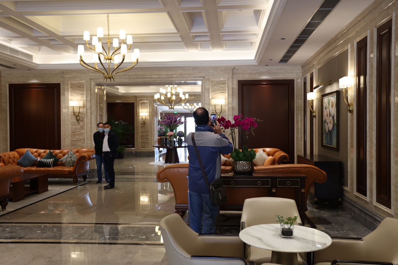 在中心工作人员引领下,大家走进二期会所影视放映厅,观看了服务中心宣传片。