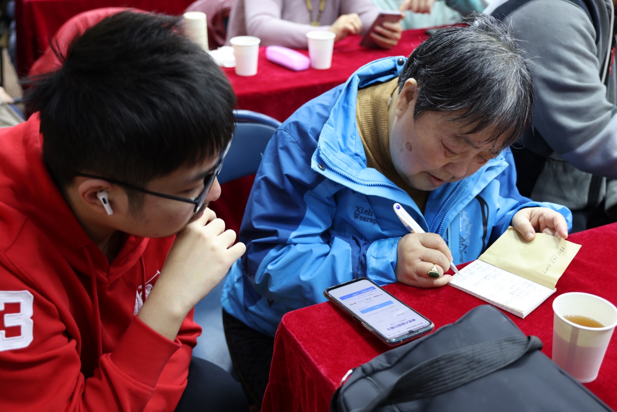 老同志们学习兴趣高涨,不断地向身边的工作人员和学生提问。有的老同志一边拿着手机仔细听讲学习操作,一边在笔记本上做记录。
