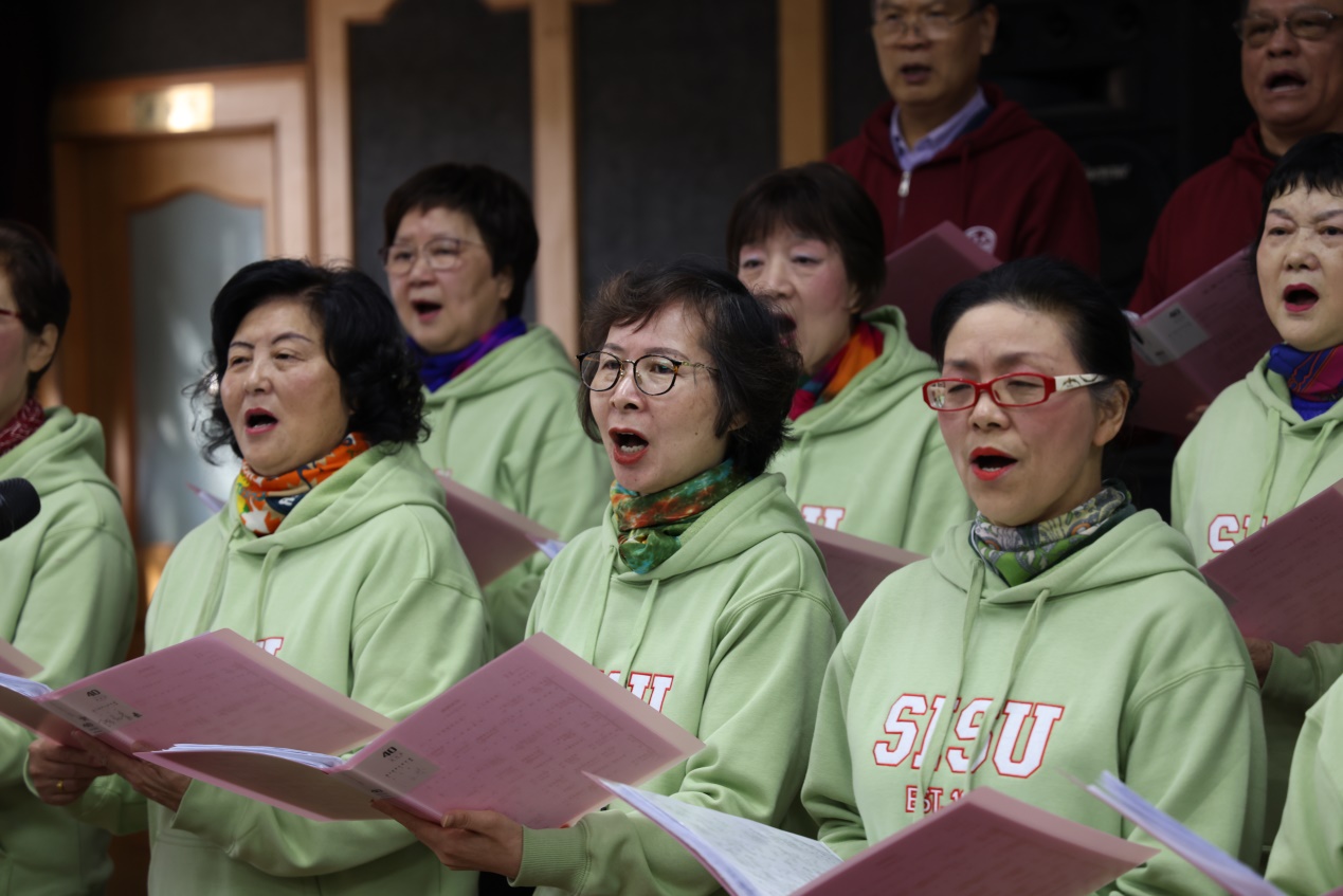 百年芳华正青春,高歌一曲献给党。11月25日上午,上外离退休工作处处长丁永祥、离退休党总支书记顾蔚和数十位退休老同志欢聚在虹口校区立泰苑,“百年芳华,初心永驻——上外老干部歌咏展演在这里举行。本次歌咏展演通过线上直播的方式展现给老同志,并且老同志们可以通过视频录像回看精彩节目。