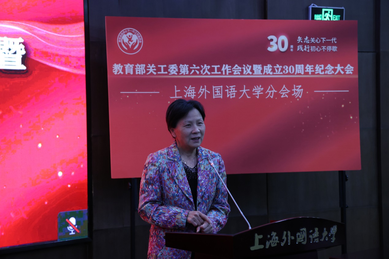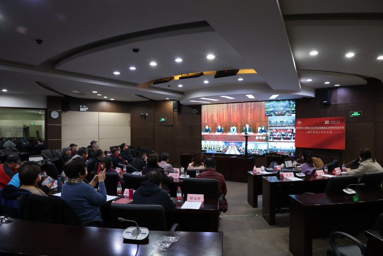 1222日下午,教育部关工委第六次工作会议暨成立30周年纪念大会在京举行。上海外国语大学关工委在虹口校区第二报告厅通过视频会议的形式参会并召开工作会议。校党委副书记、校关工委副主任王静出席并讲话,校关工委领导班子成员、各院系关工分会老同志联络人、秘书处全体人员参加会议。