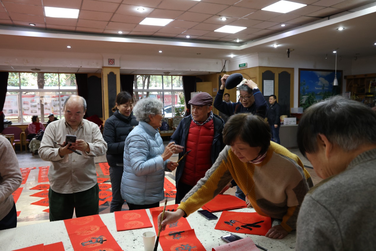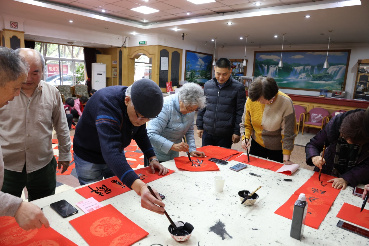 活动现场暖意融融,翰墨飘香。老同志们在现场挥毫泼墨,书写春联近百副,“福”字五十余个,将新春的美好祝福赋诸笔端。