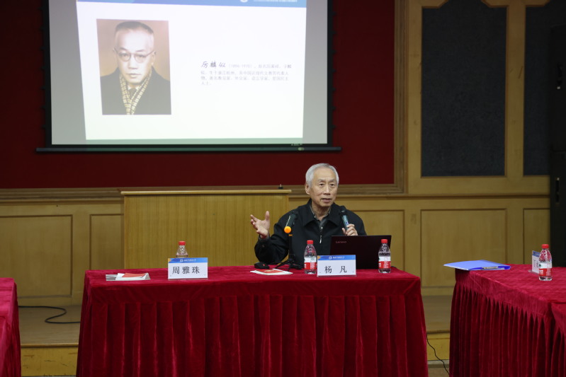 杨凡老师在党课中讲到,上外在各个时期都涌现出过名师大家,他们身上的优秀品质和感人故事值得我们传颂,他们展现出的家国情怀、红色追寻以及立德树人、循循善诱的事迹值得后人学习。因时间有限,杨老师选取了厉麟似、方重、李观仪三位老师的故事,他们虽然学贯中西,学富五车,但为人十分低调谦逊,对待学生严格而不失慈爱,对待教学和教材编写工作一丝不苟,在传道授业解惑的同时立德树人,身正为范。在杨凡老师娓娓道来的讲述下,二支部的党员们纷纷怀念起这几位曾经的老师、同事,邱懋如、史志康等老师们和大家分享了方重老师、李观仪老师关爱学生、严谨治学的事例。