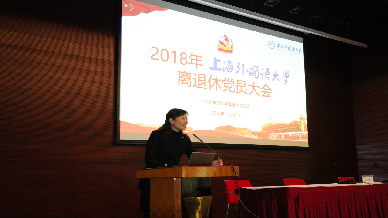 11月27日上午,2018年上海外国语大学离退休党员大会在上外教育出版社报告厅举行。上海外国语大学校长助理、党委组织部部长张静,上外离退休党总支委员、各党支部书记以及200余位离退休老党员佩戴党徽出席会议。上外离退休党总支书记顾蔚主持会议并作2018年度离退休党总支工作报告。