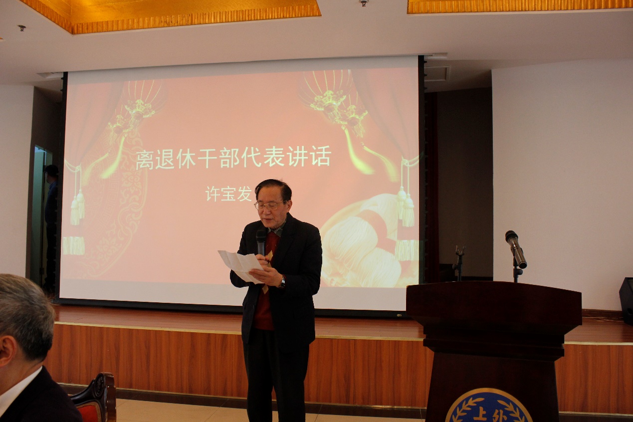 他说,习近平总书记强调,广大老干部是党和国家的宝贵财富,是党执政兴国的重要资源,是实现中国特色社会主义建设的重要力量。上外的老干部离开工作岗位后,还是一如既往地支持和关注着学校的教育事业,不少老干部依然在教学科研岗位上默默无闻地发挥着余热,学校永远不会忘记,学校永远心存感激。