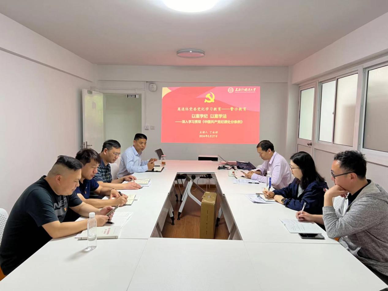 为进一步强化在职党员的纪律意识和廉洁意识,作为党纪学习教育的一个重要环节,5月27日上午,上外离退休党委在虹口校区立泰馨苑3楼会议室举行了主题为“以案学纪、以案学法——深入学习贯彻《中国共产党纪律处分条例》”的警示教育会。会议由离退休党委书记、离退休工作处丁永祥主讲,在职支部全体党员参加了学习。