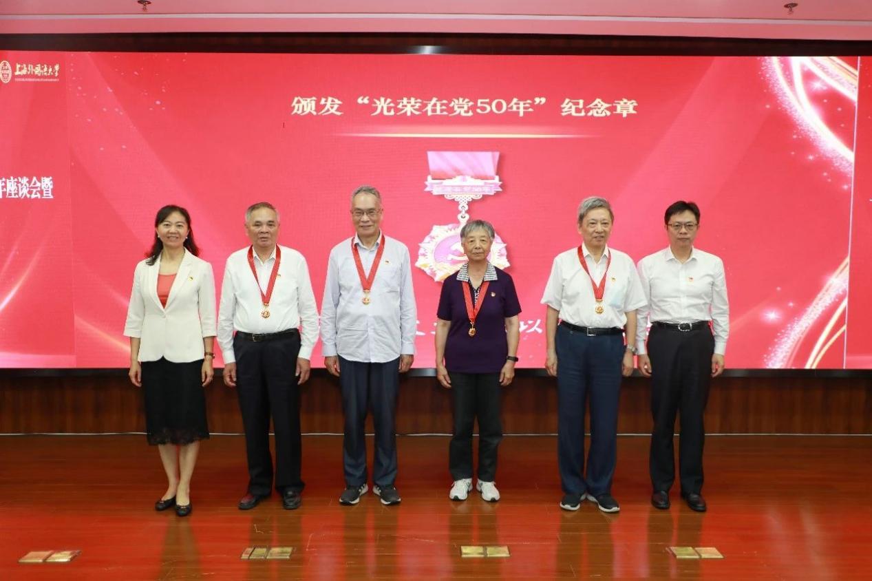 会上,校领导为“光荣在党50年”纪念章获得者代表颁发了纪念章,向获得“光荣在党50年”纪念章的老党员表示崇高的敬意和衷心的祝贺,感谢他们半个多世纪以来为党和国家的教育事业、为上外的建设发展做出巨大贡献。“光荣在党50年”纪念章获得者、学校原常务副校长谭晶华代表老党员作交流发言,他深切表达了坚定不移跟党走的信念和决心,表示老党员们将会持续发挥光和热,为学校发展积极建言献策,以实际行动助力学校“双一流”建设。