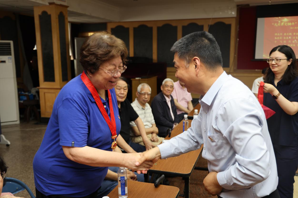 6月28日,校离退休党委、离退休工作处在虹口校区举行了“光荣在党50年”纪念章颁发仪式及座谈会。离退休党委书记、离退休工作处处长丁永祥向党龄达到50周年、一贯表现良好的19位老党员颁发并佩戴“光荣在党50年”纪念章。他希望老党员们珍惜光荣历史,不忘入党初心,永葆政治本色,并在力所能及的范围内继续发挥自身优势,为党和人民的事业发挥余热,为实现中华民族伟大复兴贡献力量。