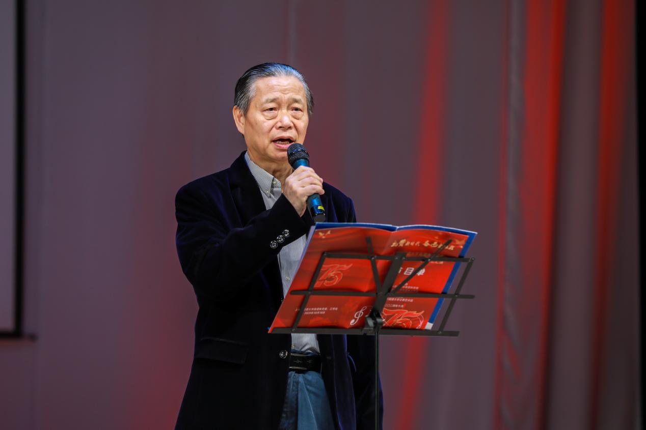 随后,金勤明代表市教卫工作党委老干部处致开幕辞。他对上外的老干部工作给予高度评价,并对此次文艺汇演活动的举办表示热烈祝贺。金勤明指出,上外党政领导高度重视离退休工作,积极搭建老有所为平台,取得了显著的成效。上外离退休工作以党建为引领,加强政治、思想和组织建设,用心用情,精准服务,温暖长者心。近年更是不断创新工作方式方法,打造了老同志“三看”活动、精品艺术社团等特色品牌。上外的老干部工作在市教卫系统老干部工作领域中屡获殊荣,得到了上级部门的充分肯定。最后,他祝愿祖国繁荣昌盛,祝愿上外在新的征程上再创辉煌。