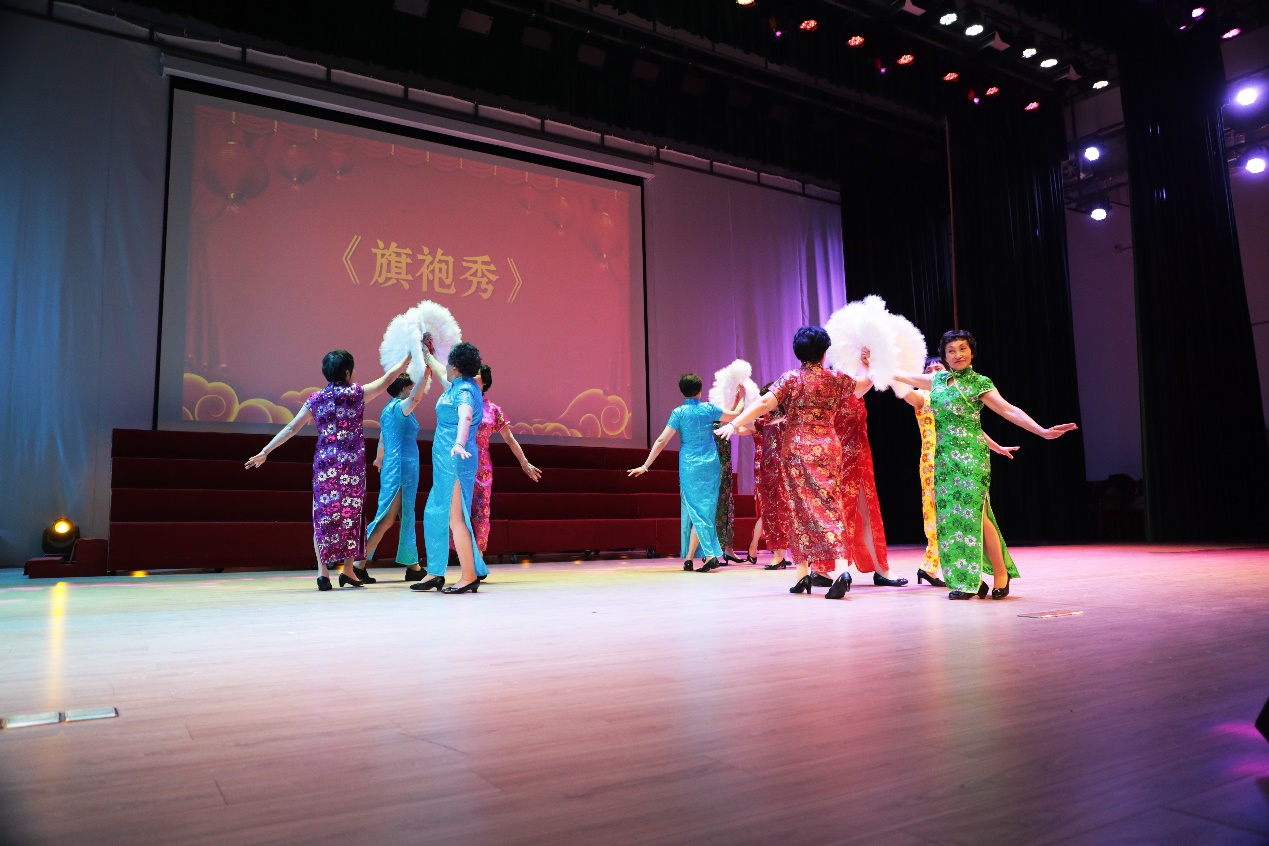 文艺表演由我校退休老同志刘宗梅和离退休工作处干部刘天宝主持。越剧清唱《杨开慧-清水塘》诉说着老同志们对为建立新中国而抛头颅洒热血英勇献身的革命先烈的崇敬之情;旗袍队的旗袍秀表演,把中国旗袍的柔美和对美好生活的追求完美地结合起来,令人陶醉; 混声合唱《天边的骆驼》《 乡音乡情》音色嘹亮、使人心潮澎湃;器乐合奏《青年友谊圆舞曲》《我的祖国》旋律优美,赢得满堂喝彩;上海市退(离)休老专家协会文教委外语组老师们表演的《莫斯科郊外的晚上》《啊朋友》《清泉》《鸽子》《山茶花》等中外经典歌曲,轻柔细腻,深情委婉,赢得了大家的喝彩和掌声。演出中穿插的抽奖节目,营造了全场的欢乐气氛。
